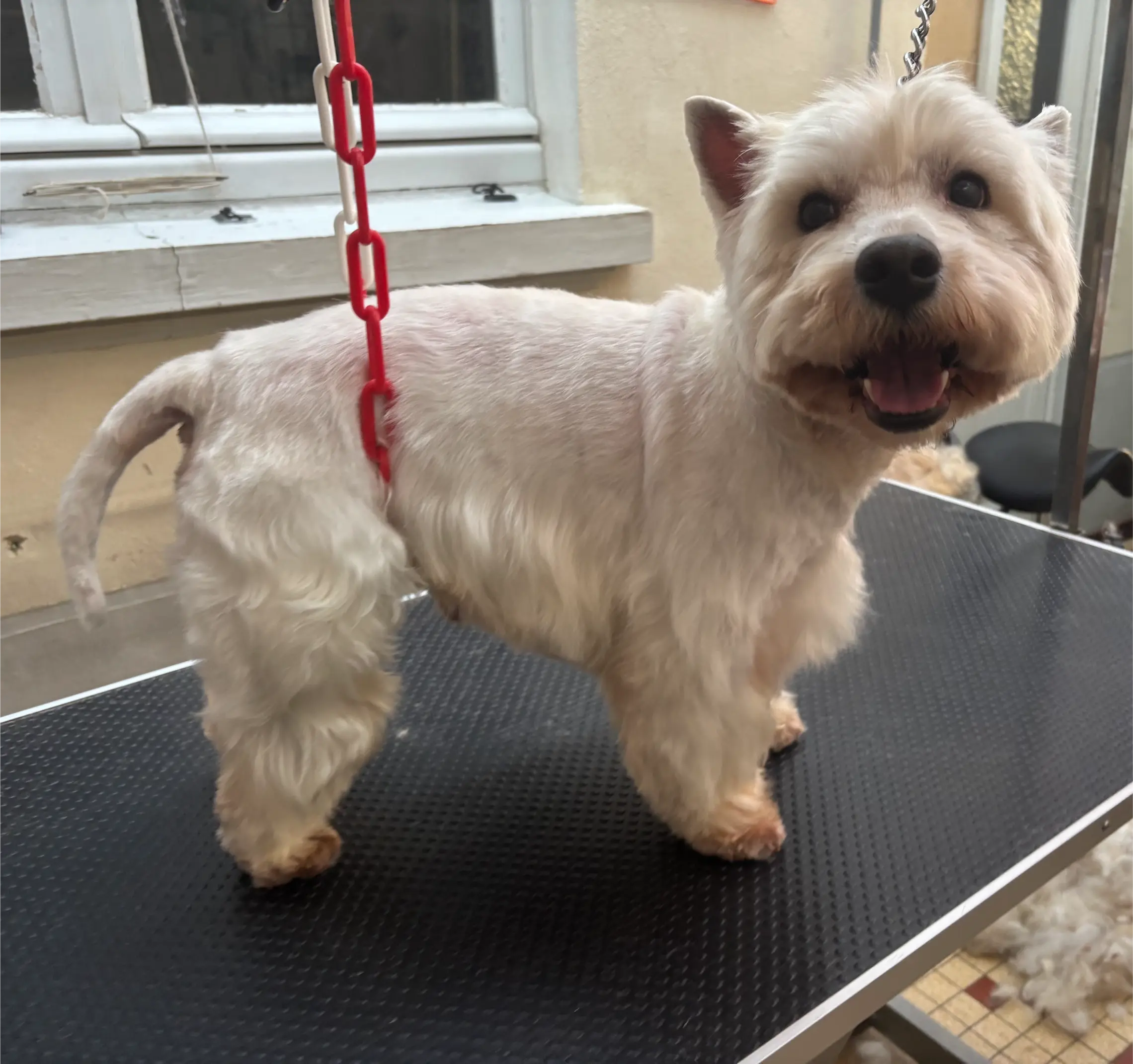 Le toilettage est 100 % personnalisé, adapté au pelage, au caractère et au rythme de votre compagnon.